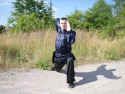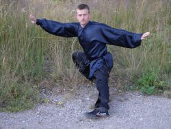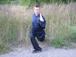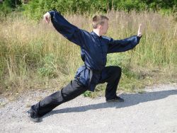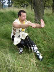 Jedna noha je pokrčená a druhá zcela napnutá. Obě špičky směřují dopředu před bojovníka. Pokrčené koleno by mělo být nad špičkou. Obě chodidla jsou pevně na zemi. Pánev bojovníka je ve výšce pokrčeného kolena, tudíž bojovník musí svou váhu udržet na nohou a nesmí postoj „prosednout“. Tělo i krk jsou opět narovnané.
